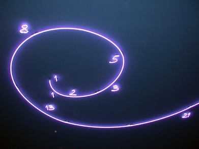 In der Natur finden wir bei der Anzahl der Blütenblätter vieler Blumen sowie vor allem bei der Blattstellung (=Phyllotaxis) von Pflanzen ein Wiedersehen mit den Fibonacci-Zahlen, die hier bei den Umläufen der Blattspiralen auftreten. Blätter sprießen im Allgemeinen spiralförmig aus dem einzelnen Zweig oder Stamm. Wer sie zählt, muss deshalb den Zweig ein paar mal umrunden. Wann steht wieder ein Blatt über dem ersten Blatt? Die Anzahl dieser Umrundungen geteilt durch die Zahl der Blätter ergibt das phyllotaktische Maß, einen Bruch, dessen Zähler und Nenner bei fast allen Pflanzen Fibonacci-Zahlen sind.