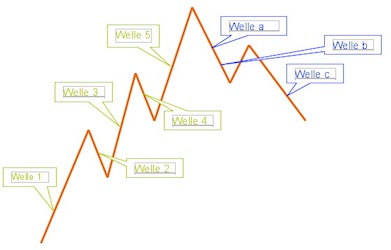 Elliotts Theorie postuliert eine gewisse Proportionalität zwischen den einzelnen Wellen und gestattet so die Bestimmung von Kurszielen mittels bestimmter Fibonacci-Ratios. Es hat sich gezeigt, dass Aktienmärkte normalerweise vorangegangene Bewegungen um gewisse Prozentsätze korrigieren, sog. Retracements. Am bekanntesten sind die Fibonacci-Retracements mit den horizontalen Niveaus 62% ( =1,618 - 1), 50% und 38% - bei der Untersuchung von Kurs-Charts über einen längeren Zeitraum hinweg!