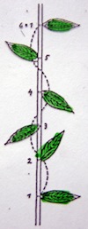 Beispiel für eine 2/5 PhyllotaxisMehr noch: Stets sind es solche, die in der Fibonacci-Folge durch genau eine Zahl voneinander getrennt sind. Die Phyllotaxie des Birnbaums beträgt 3/8 (3 Umläufe für 8 Blätter): zwischen 3 und 8 liegt 5. Bei der Weide sind es 5/13 - zwischen 5 und 13 liegt 8. Phyllotaxien von 13/34, 21/55 und noch höheren Werten finden wir oft an kurzstämmigen Pflanzen.