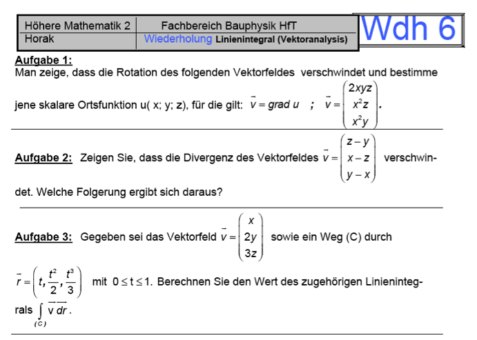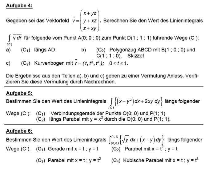 Es folgt ein Aufgabenblatt zu Linienintegralen: